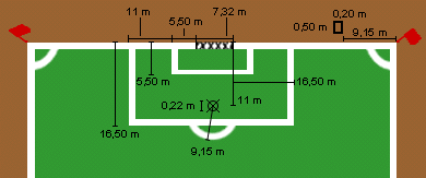 beiden Pfosten entfernt, ist die Strafstoßmarke als sichtbares Zeichen
