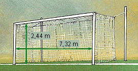 dieselbe Breite wie Torpfosten und Querlatte haben.